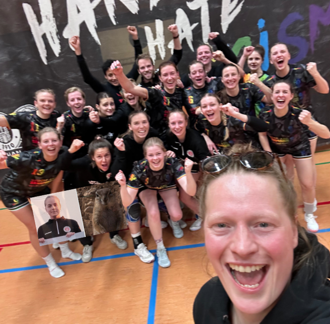 In der zweiten Hälfte steht die Abwehr teilweise leider etwas weniger solide und wir verlassen uns lieber auf unseren Angriff. Die 30-Tore-Marke fest im Blick nutzt der Rückraum die Lücken konsequent, und besonders Lari überzeugt mit sicheren Abschlüssen von außen. Aber auch die Norderstedterinnen kommen zu oft durch unsere Abwehr und können trotz starker Leistung unserer Torfrauen einige Bälle verwandeln. Nach verletzungsbedingten Ausfällen auf außen springt Allroundtalent Anni ein und zeigt, dass Vielseitigkeit ihr zweiter Vorname ist. In der 55. Minute ist dann das lang ersehnte Ziel erreicht und Rabs verwandelt das Tor zur 30:22 Führung. Bei einem Stand von 32:26 ertönt der Schlusspfiff.