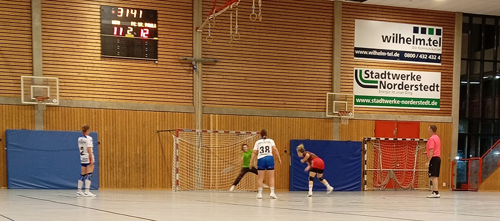In die zweite Halbzeit starteten wir daher hochmotiviert. Die Kreisläuferin hatten wir mittlerweile ziemlich gut im Griff. Deswegen und dank einiger starker Paraden von Eva sowie mehrerer Würfe der Norderstedterinnen am Tor vorbei blieben wir mehr als 18 Minuten ohne Gegentreffer und hatten uns zwischenzeitlich einen 6-Tore-Vorsprung herausgearbeitet. Zum Abpfiff stand dann ein 15:20 auf der Anzeigetafel.